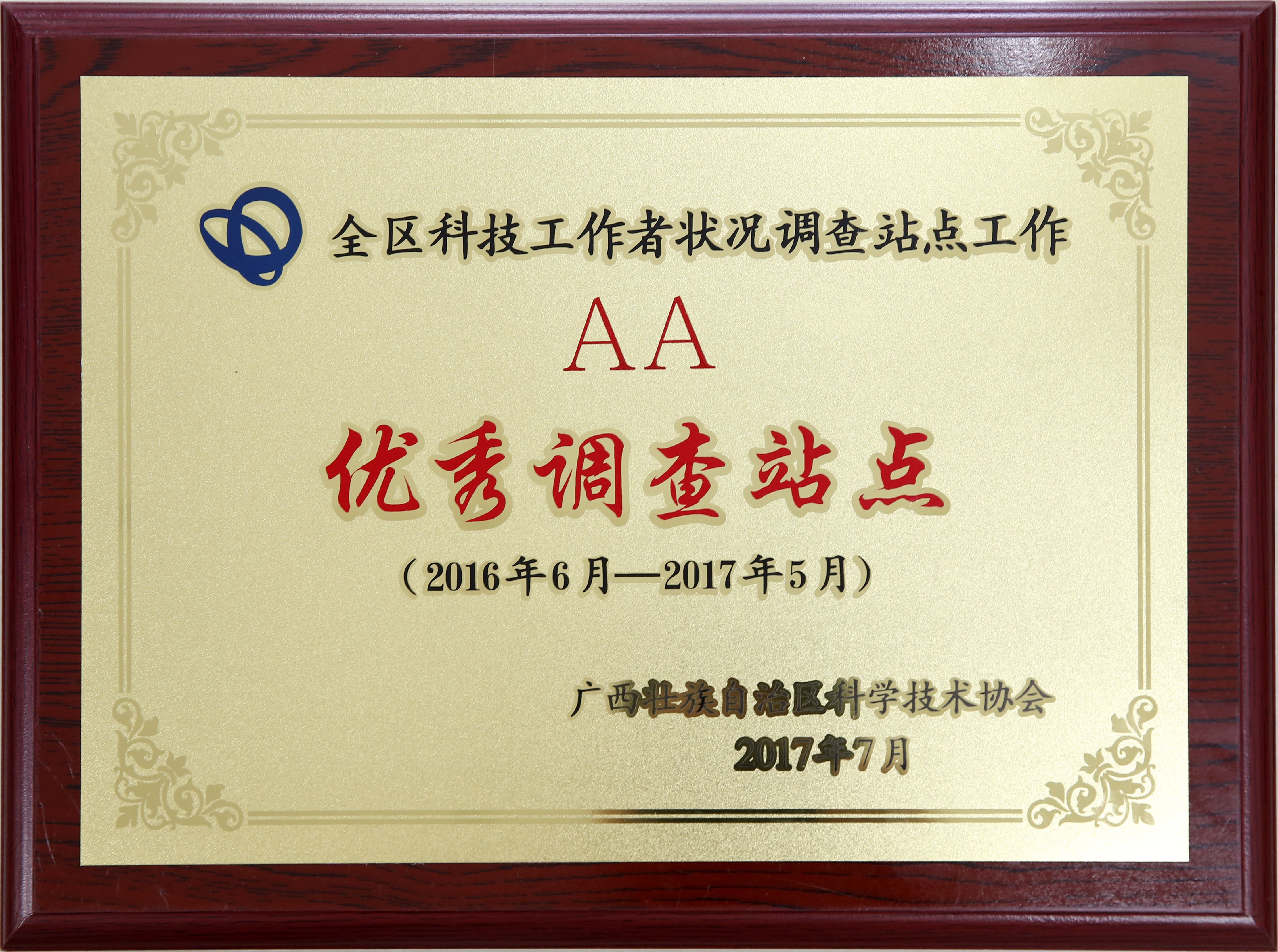 2016年-2017年评为全区科技工作者状况优秀调查站点