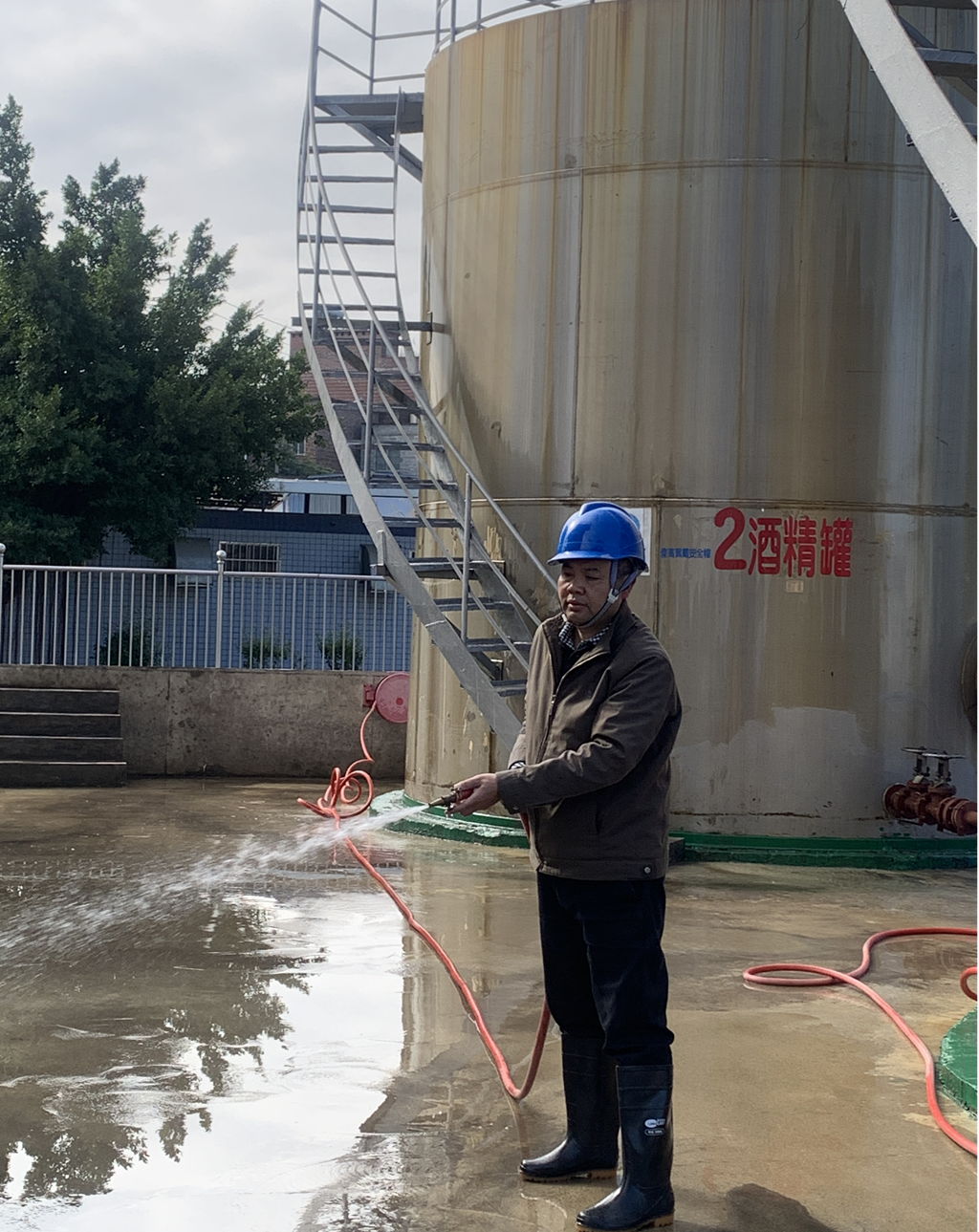 酒精是公司的大宗物料,也是易燃易爆的危险化学品,发放时需要通过特殊管道直接从酒精罐输送到车间。刘江石作为酒精罐区管理员一守就是十多个春秋,在一次向车间发放酒精的过程中,刘江石发现输送时间超出了以往所需时间几分钟,马上电话询问车间是否已经领用足量酒精,在收到操作员反馈未达到领用量后,刘江石顿时就觉察到可能是管道出现异常,于是立刻汇报公司组织人员进行排查,最终发现车间附近的地下管道出现酒精泄漏,及时处理避免了一次安全事故的发生。