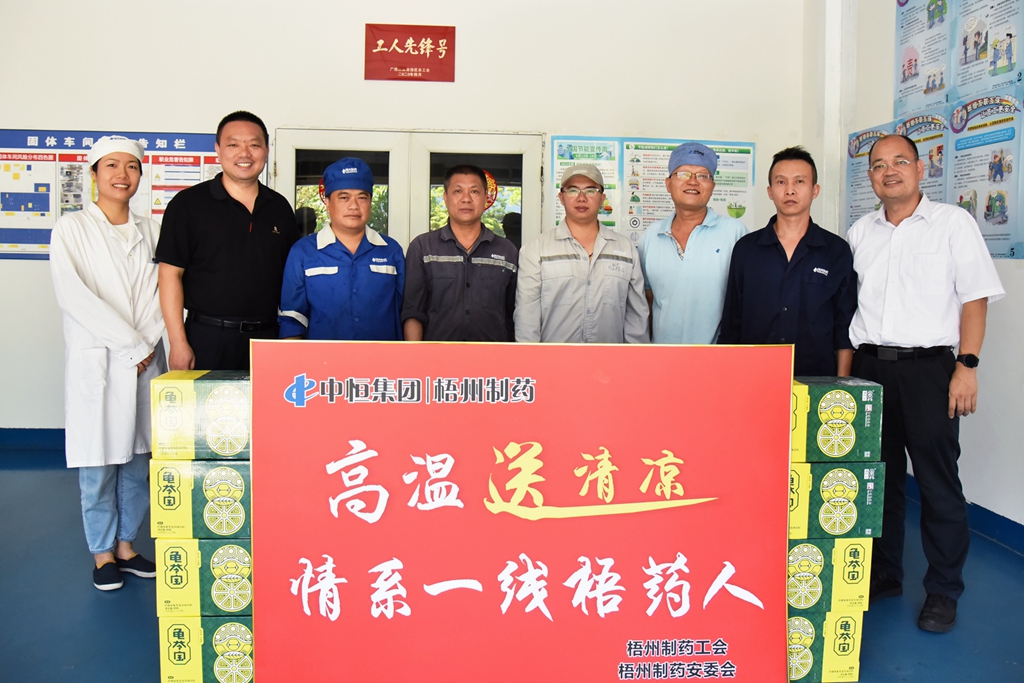 夏日炎炎,骄阳似火。持续的高温给工作在一线的职工带来了严峻的考验,但敬业的他们不惧“烤”验,坚守岗位,用汗水换来了公司生产经营工作的顺利进行。为了表达公司对这些在高温岗位工作职工的关心关爱,近日,梧州制药工会联合公司安委会开展2022年“高温送清凉 情系一线太阳成集团tyc9728人”慰问活动。