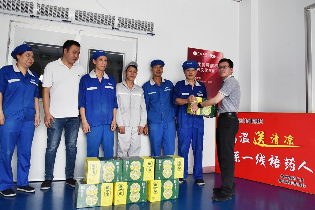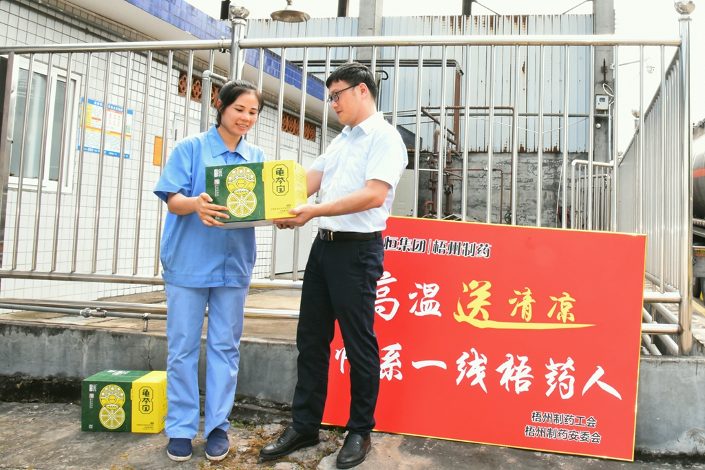 炎炎夏日送清凉,丝丝关爱入心田。一份关爱、一份叮咛、一份嘱托,切切实实把防暑降温和安全生产落实到一线每一名职工的心中。此次“送清凉”活动的开展体现了梧州制药重视员工安全、关心员工健康的工作理念,更是落实“我为职工办实事”的具体实践,让广大一线职工真切感受到“娘家人”就在身边。