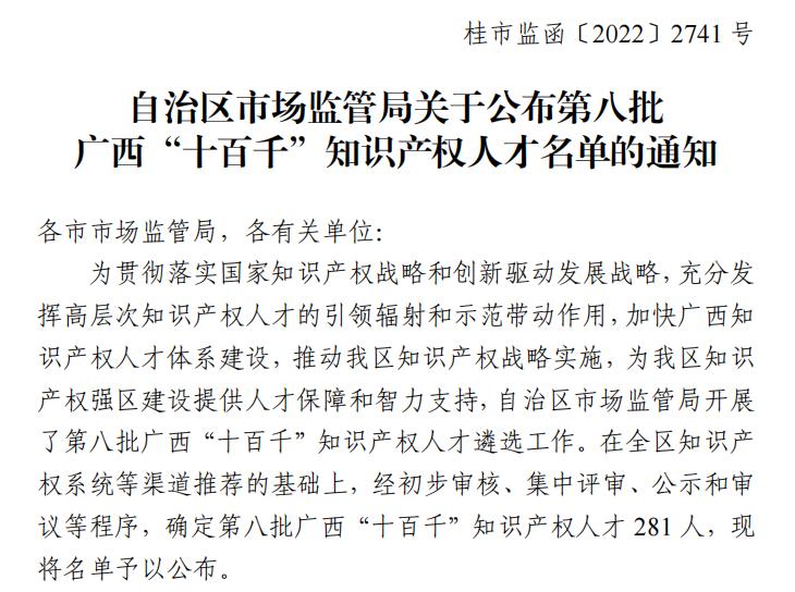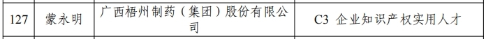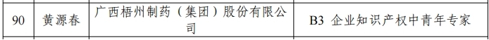 近日,自治区市场监管局公布第八批广西“十百千”知识产权人才名单,梧州制药副总经理麦志雄同志荣获“A3 企业知识产权领军人才”,知识产权专员黄源春同志荣获“B3 企业知识产权中青年专家”,知识产权专员蒙永明同志荣获“C3 企业知识产权实用人才”。