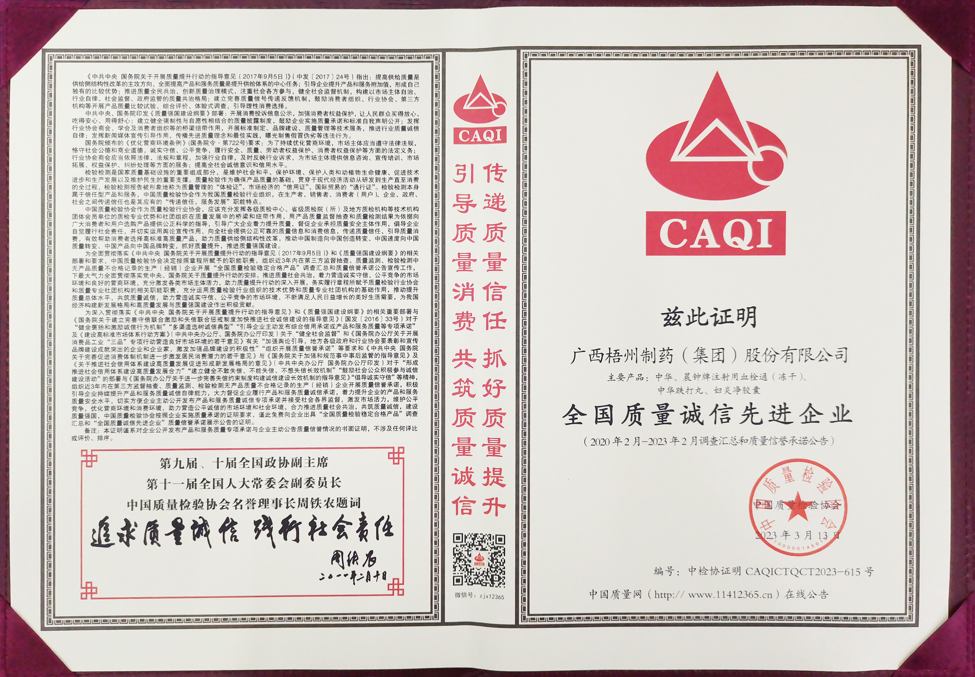 2023年全国质量诚信先进企业