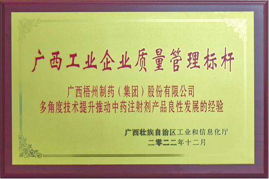 梧州制药始终秉承“为全民健康造好药”的理念,以科技创新、产业升级、跨越式发展为驱动点,努力营造“聚精会神搞经营,一心一意谋发展”的良好氛围,推动广大职工团结拼搏走在发展的最前沿,把握发展机遇,紧紧围绕医药医疗健康领域的传承与创新,稳步提升产品质量工艺水平,总结出以多角度技术提升推动中药注射剂产品良性发展的经验,为行业树立起标杆形象。