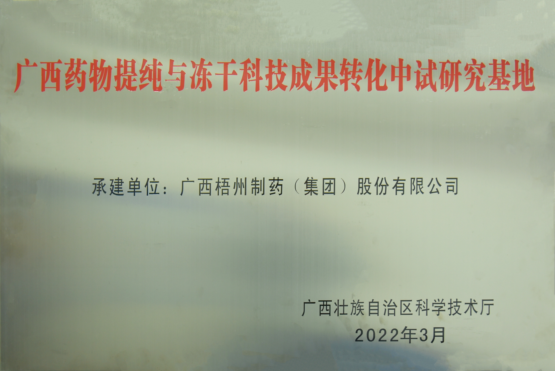 太阳成集团tyc9728评为广西药物提纯与冻干成果转化中试研究基地