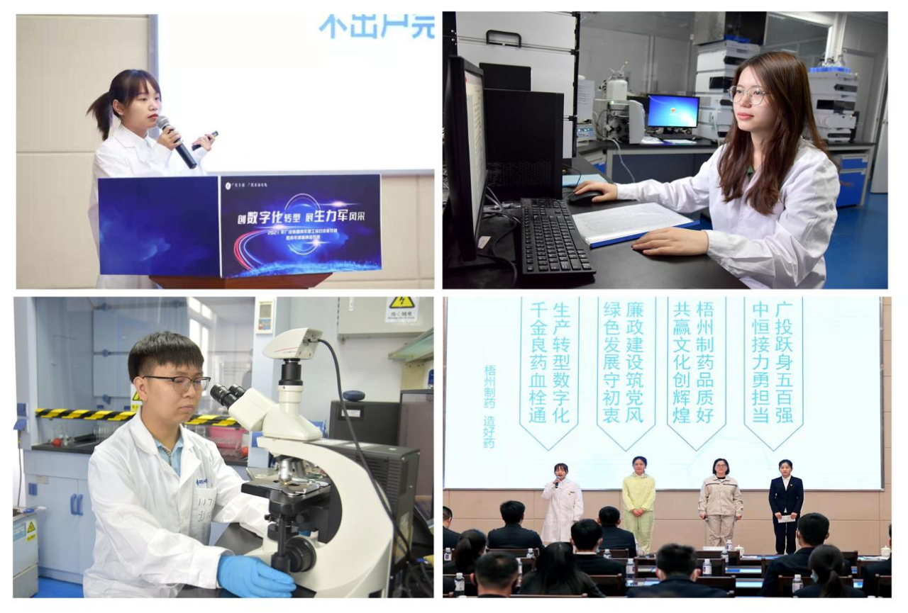 梧州制药第四团支部团员青年分布于质量、科研一线岗位上,他们坚持以专业知识和技能为企业质量管理体系、技术研发创新贡献蓬勃的青春力量,助力梧州制药荣获“全国药品不良反应监测评价单位”“全国质量诚信标杆企业”“广西先进质量管理单位”等多项荣誉。