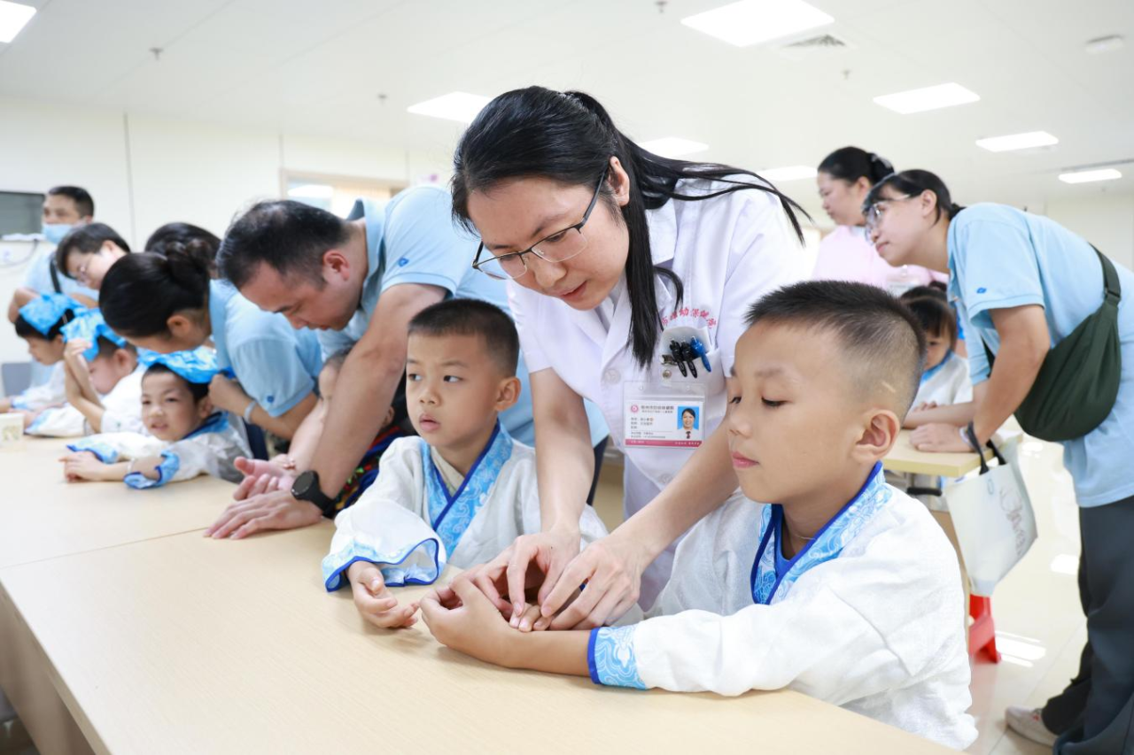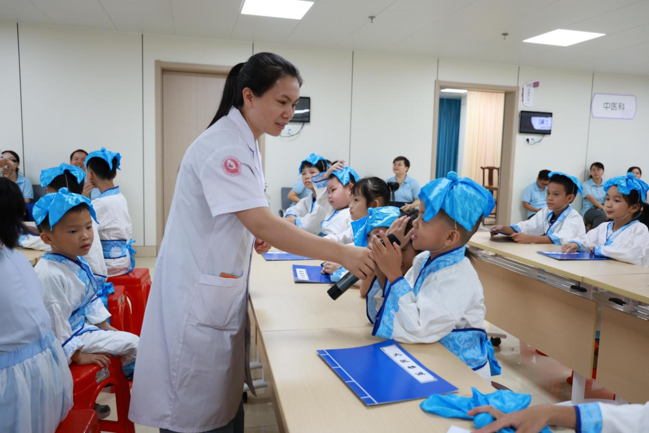 活动现场,资深中医师通过寓教于乐的方式,讲述着中医基础理论、经络穴位知识以及中医药在日常生活的应用。孩子们不仅听得津津有味 ,还积极举手提问互动,从药材的形状、生长环境到用药知识等,都表现出对中医药文化强烈的求知欲望。