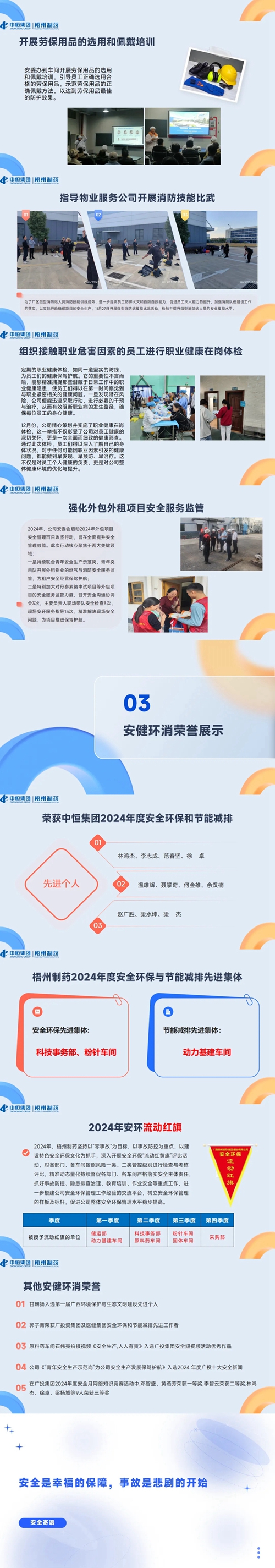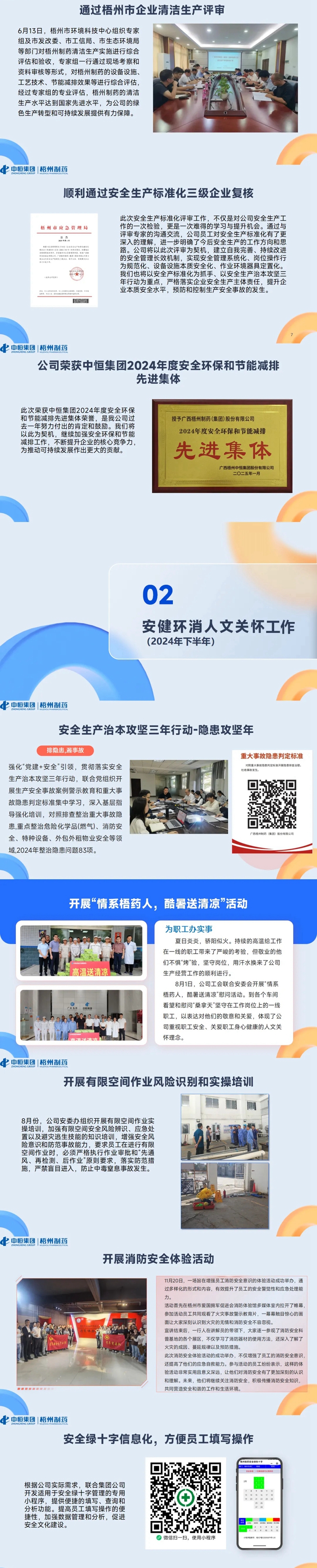 下面,让我们共同回顾梧州制药2024年度安健环消情况,了解这一年来梧州制药在安全环保工作上的贡献与作为。