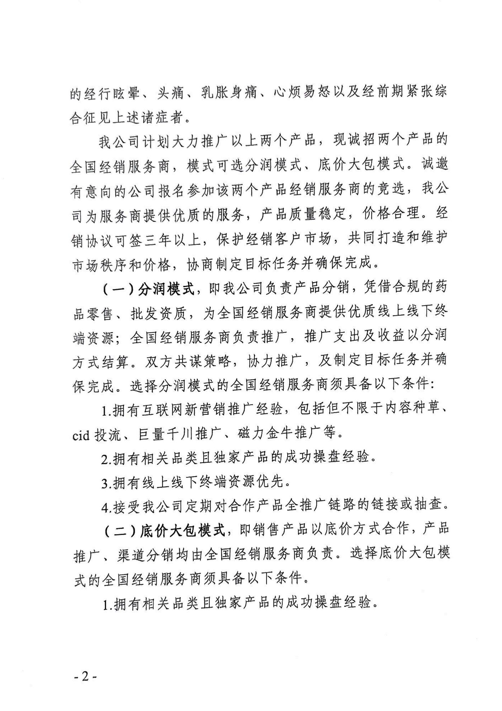 复方蛤蚧口服液、坤月安颗粒招选公告