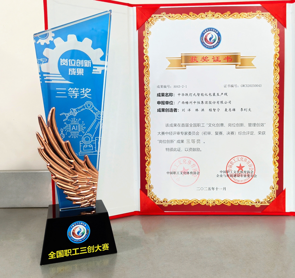 中华跌打丸智能化包装生产线荣获“岗位创新“成果 三等奖