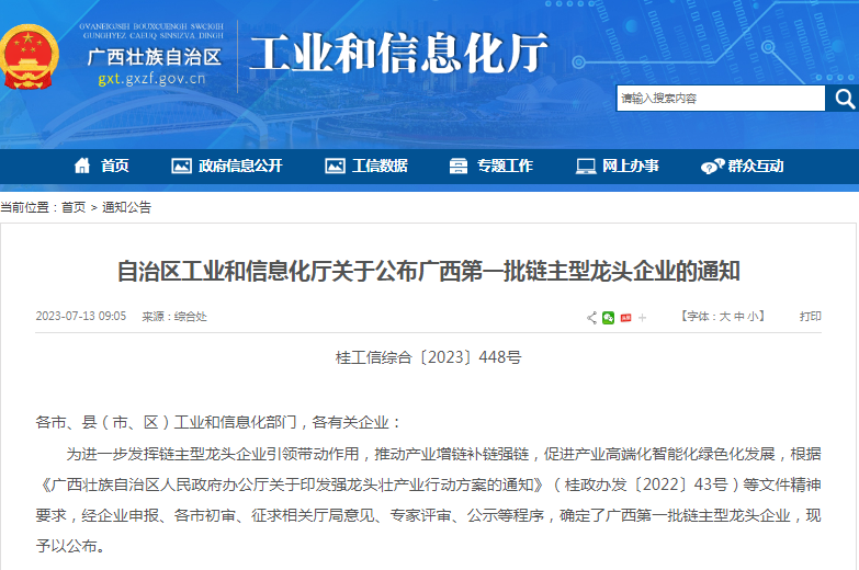 近日,自治区工业和信息化厅公布第一批链主型龙头企业名单,30家企业入选。这些链主型龙头企业不仅是其所在行业的龙头,也在产业链中占据主导地位,在新时代新征程新伟业中,共同助力广西稳经