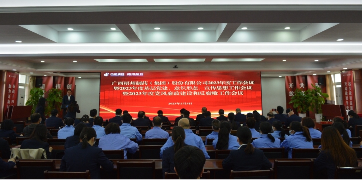 2月3日,梧州制药召开2023年度工作会议暨2023年度基层党建、意识形态、宣传思想工作会议暨2023年度党风廉政建设和反腐败工作会议。会议以习近平新时代中国特色社会主义思想为指导,深入学习贯彻党的二十大精神,全面