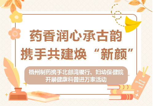 梧州制药携手北部湾银行、妇幼保健院开展健康科普进万家活动药香润心承古韵 携手共建焕“新颜”7月19日上午,梧州制药联合广西北部湾银行梧州分行营业部、梧州市妇幼保健院,在北部湾银行大厅举办“中医文化润心