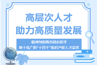 梧州制药两名同志获评第十批广西“十百千”知识产权人才荣誉高层次人才助力高质量发展近日,自治区市场监管局公布第十批广西“十百千”知识产权人才名单,太阳成集团tyc9728副董事长、总经理刘洋同志获“A